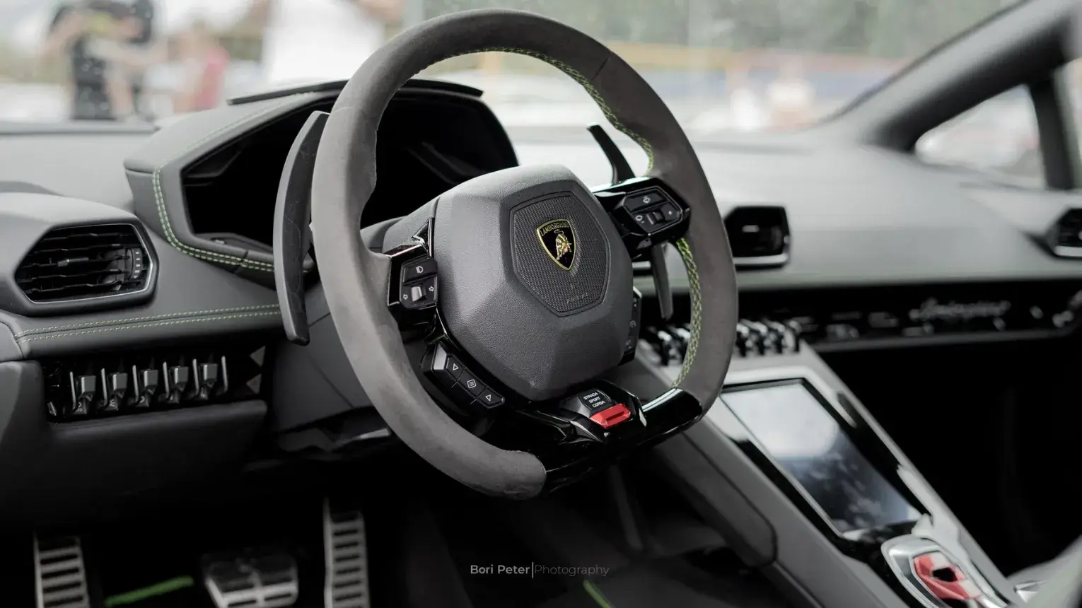 Az autó belseje sem marad el a luxustól. A zöld Lamborghini Huracán belső terében a kifinomult bőr és kárpitok, az elegáns kivitelű műszerek és a prémium minőségű anyagok találkoznak. Az autó vezetőjét és utasait egyaránt kényezteti és lenyűgözi.