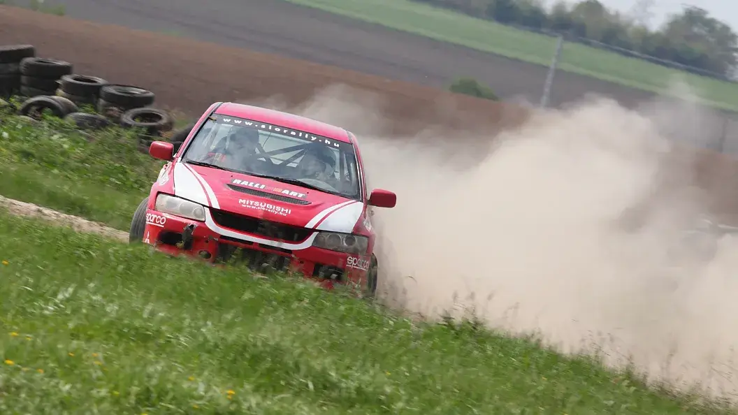 Mitsubishi Evoval rallyzás 1 km-es rallycross pályán Siófok mellett