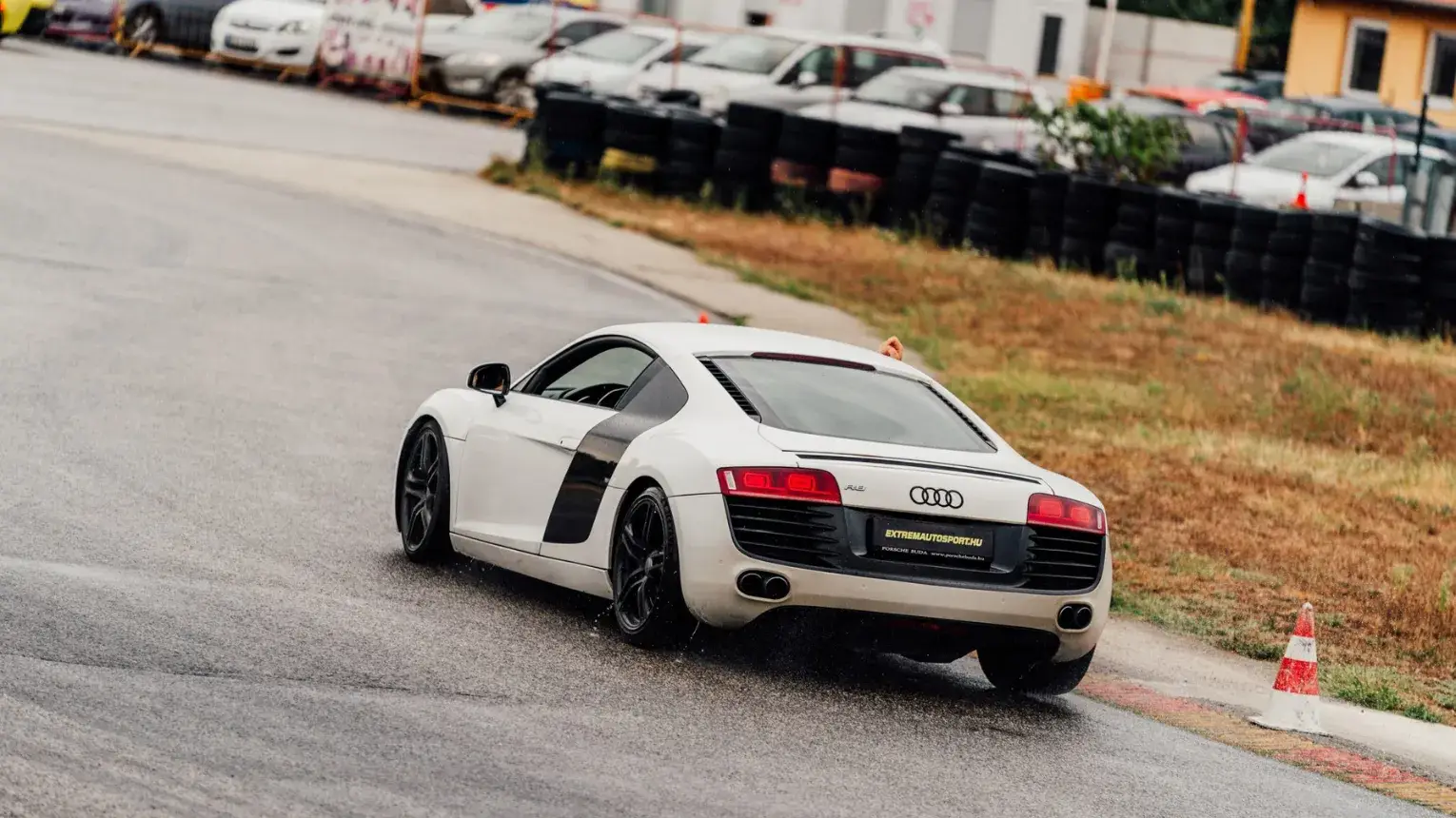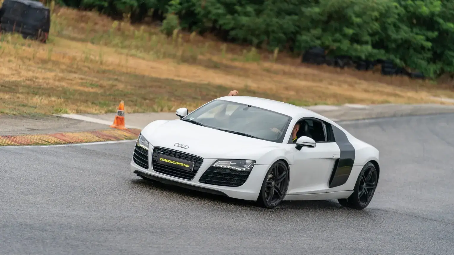 Az Audi R8-as egy igazi vadállat. A gázpedál legkisebb érintésére azonnali száguldásba kezd. Igazi nagyméretű gokart, de több mint 400 lóerővel. Bámulatosan precíz és közvetlen élményt nyújt és igazán jól érzi magát a versenypályán. Hangja már alapjáraton is magával ragadó, amit a fordulat emelésével egészen a pusztító ordításig tolhatunk. Gyönyörű és megunhatatlan.