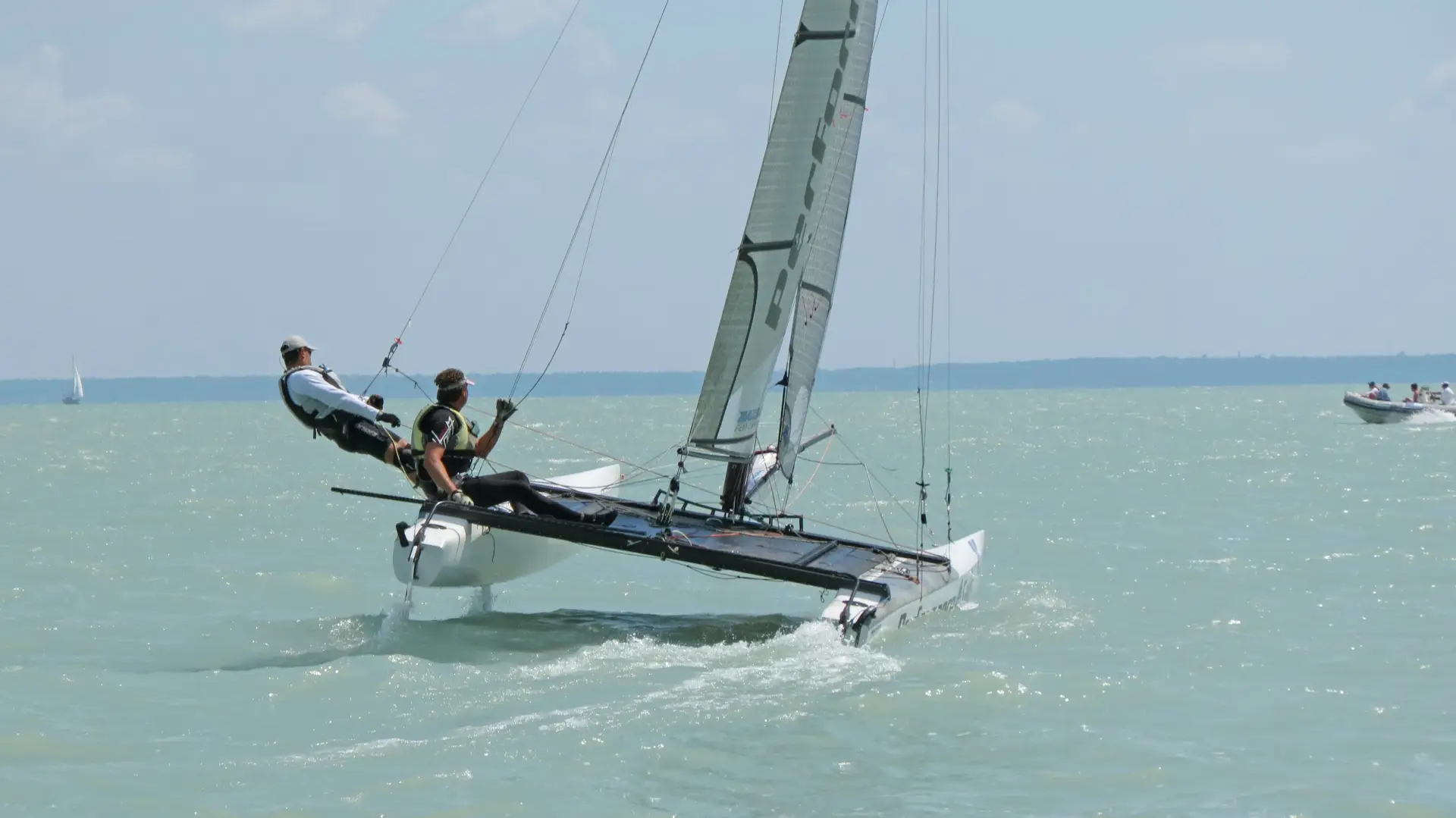 Az északi parton vár rád az egyik legvagányabb, nagysebességű sportvitorlás, egy katamarán.