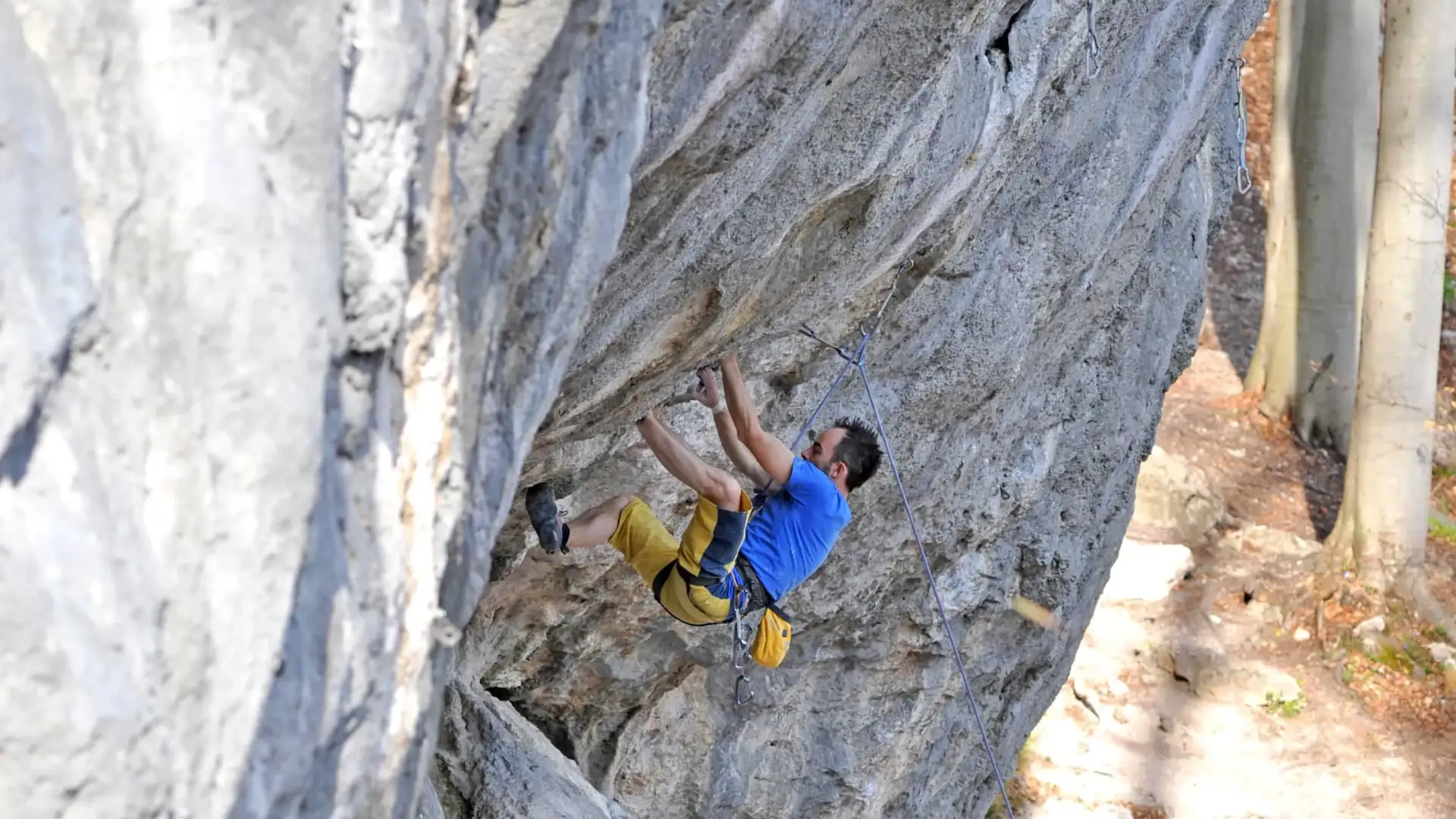 Sziklamászás természetes sziklafalon Budapest közeli mászóiskolában