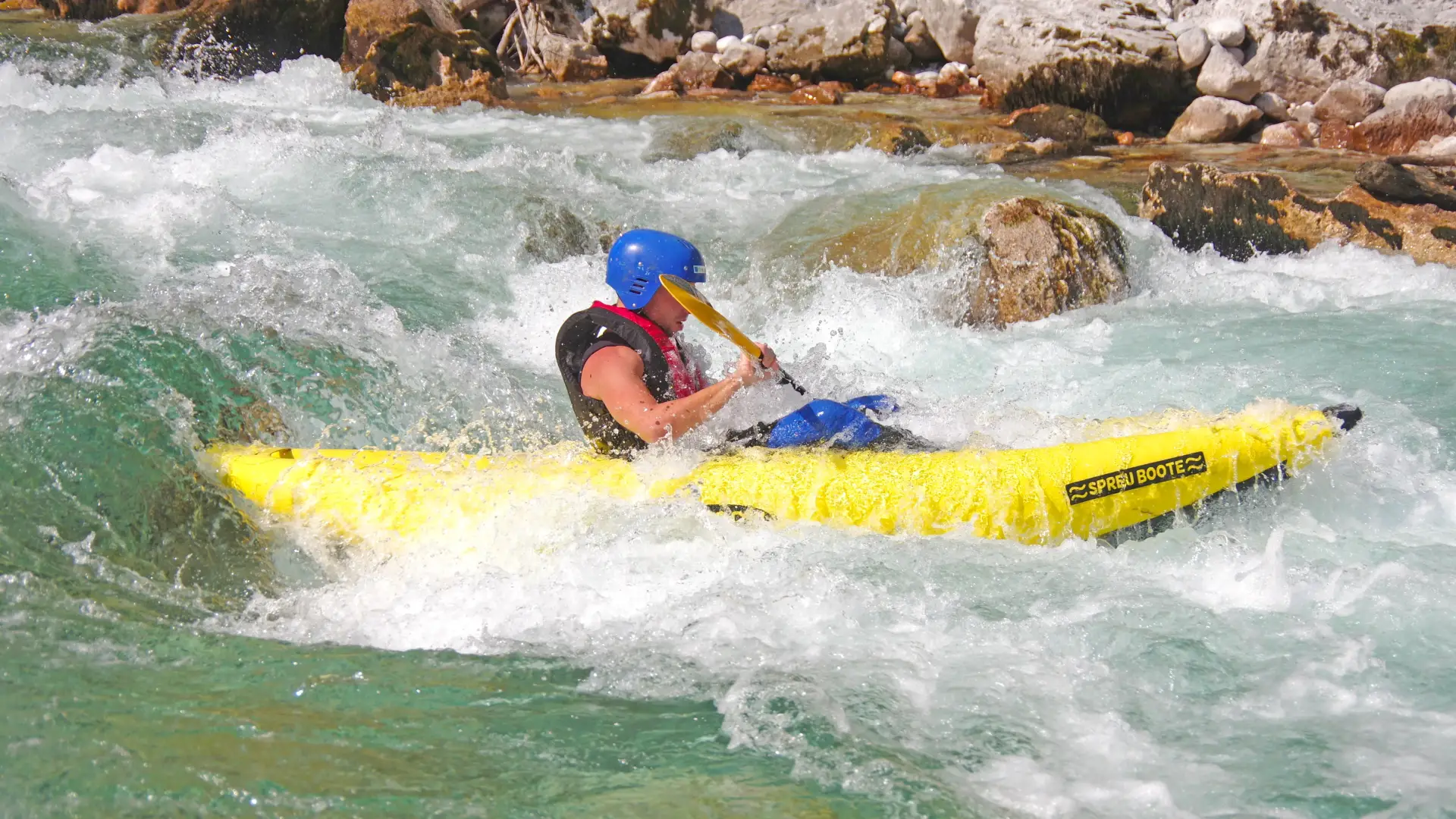 Fél napos kajak túra alatt leevezünk a legnépszerűbb szakaszán a Soca folyónak. Válassz a kezdő (Class WWI-II) és a haladó (Class WWII-III) szakaszok közül.