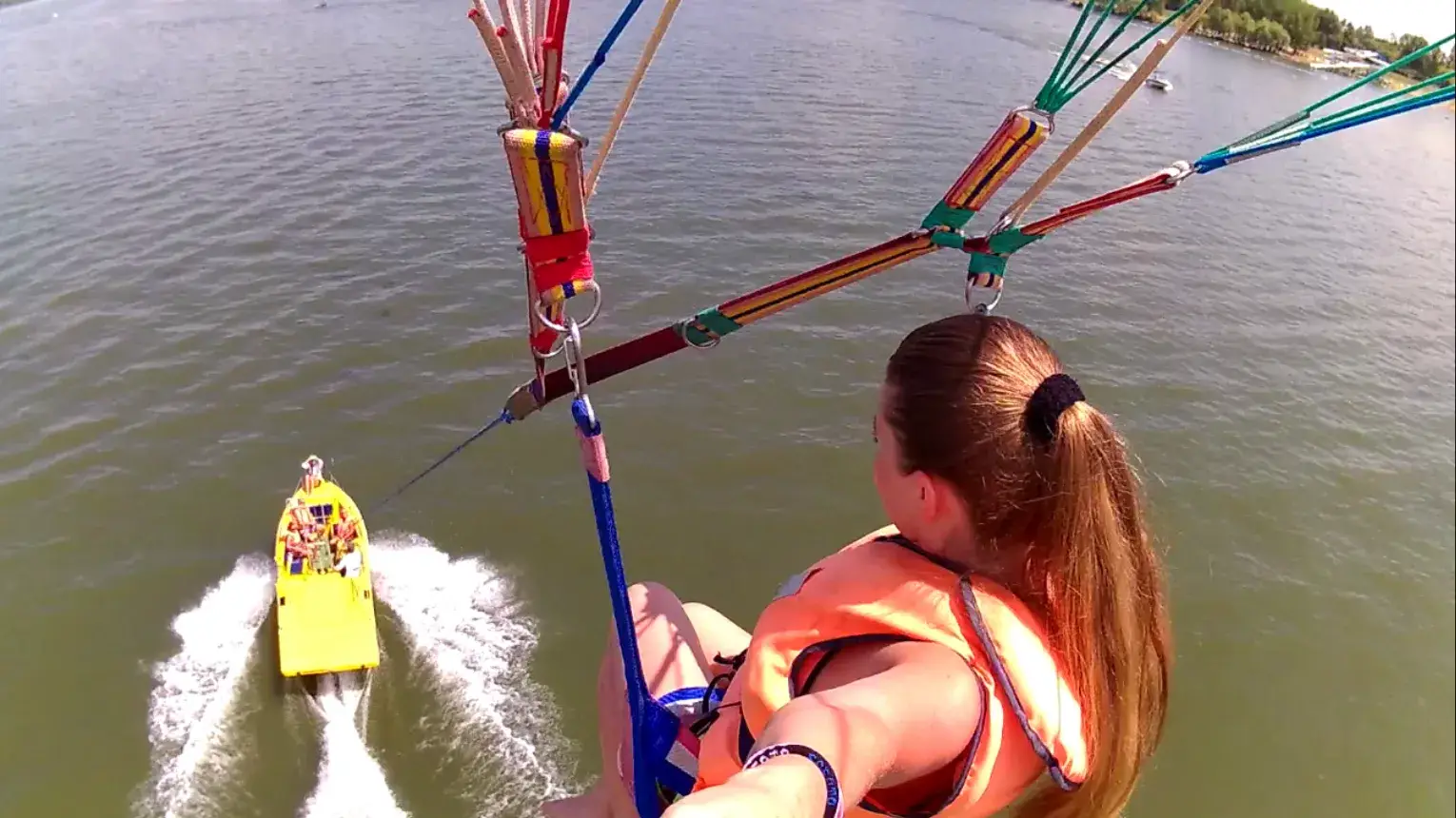 A hajó, a part mellől indul utasaival a fedélzetén. A menetszelet kihasználva belobbantjuk az ernyőt, majd a repülni vágyó utas beleül a speciális hevederbe. A hajó fokozatosan gyorsul, az ernyő emelkedik, ezáltal az utas „felszáll" a magasba a vontatókötél segítségével.