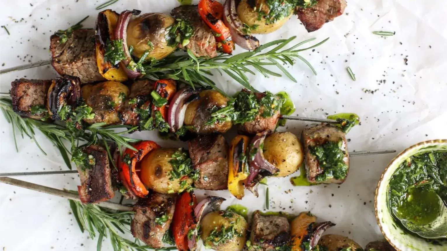 - Brocheta (Steak hús zöldségekkel és mini burgonyával a nyárson)