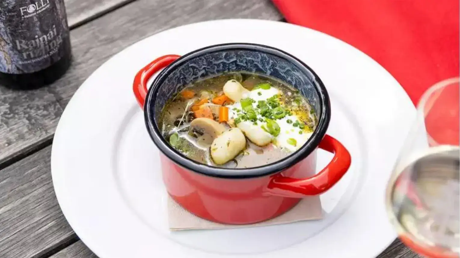 Válogasson kedvére szezonális étlapunkról! Előételként a Waldorf salátával körített rántott sertés rilette-t ajánljuk. A salátát hagyományosan majonéz, zeller, pirított dió, zellerszár és zöldalma felhasználásával készítjük. A sertéshúst egész éjjel zsírban, fűszerekkel konfitáljuk, másnap szálára tépkedjük, beízesítjük, golyókat formálunk belőle, bepanírozzuk és kirántjuk. Jó étvágyat hozzá! Boraink közül szerintünk az Olaszrizling illik hozzá a legjobban.