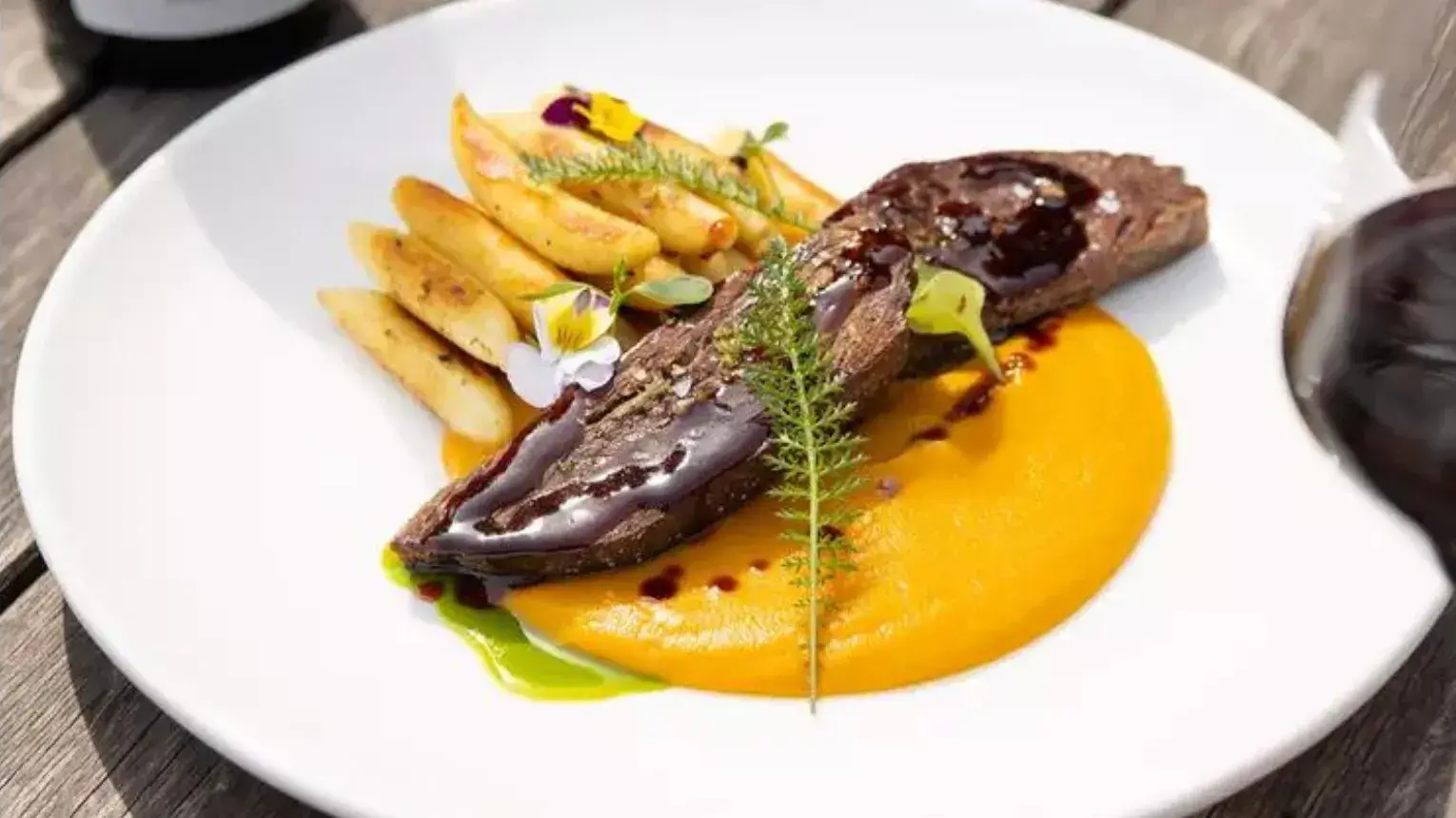 Főételeink között kedvencünk a Lapon sült kacsamell, amit tárkonyos meggyel, pirított túrólepénnyel és mandulával kínálunk. A kacsamellet mi szuvidoljuk, az enyhén gyógynövényes, édeskés ízű tárkonyt pedig a fűszerkertünkben termesztjük. A meggy és túró édeskés és savanykás ízkombinációja kihangsúlyozza a kacsamell jellegzetes zamatát. Bármelyik ünnepi asztalon is megállja a helyét, a mandula kifejezetten jól áll neki. A Folly Cédrust ajánljuk hozzá.