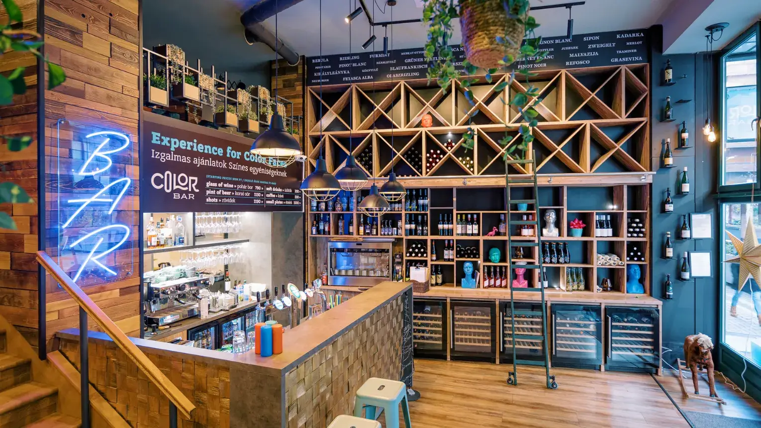 A Color Bar Budapest a 7. kerület szívében, a Gozsdu udvar mellett, a Madách út 11. szám alatt vár. Nevében, hangulatában is a sokszínűséget hordozza és kínálatában is terjedelmes választékot találunk. A bor, sör, égetett szesz, étel vonal sok-sok izgalmat rejt.