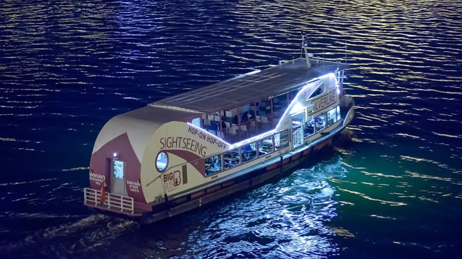 A hajóra való beszállás 19:00-kor kezdődik minden nap, így a korán érkezők már a fedélzeten várhatják az indulást pezsgőjük társaságában. A hajóra való érkezéskor ugyanis, miután a helyére kísértük kedves vendégeinket.19:30-kor pontban felhúzzuk a horgonyt és nekivágunk a kalandnak, egyenesen árral szembe, északi irányba haladunk felfelé a Dunán egészen a Margit hídig, ahol is visszafordulunk és úszunk az árral, át a hidak alatt egészan a Rákóczi hídig, azaz a belváros (a kivilágított, műemlékekkel tarkított városrész) végéig. Ott ismét visszakanyarodunk és ismét a Margit hidat vesszük célba. Ezt a kört a belvárosban 2x tesszük meg az este folyamán, lehetőséget adva ezzel utasainknak, hogy alaposan szemügyre vegyék a látványt.