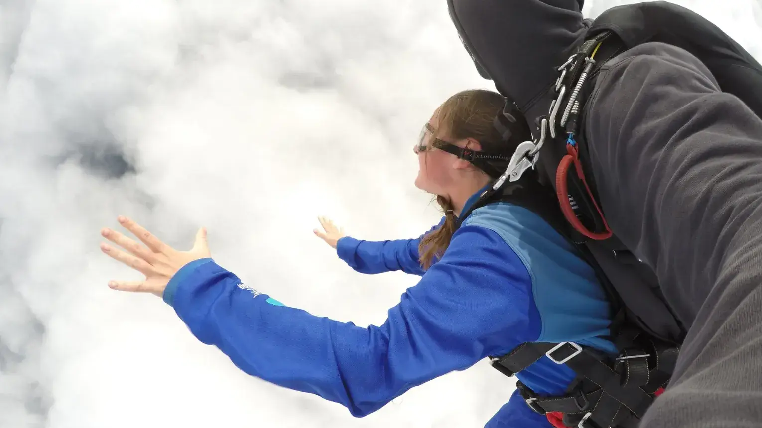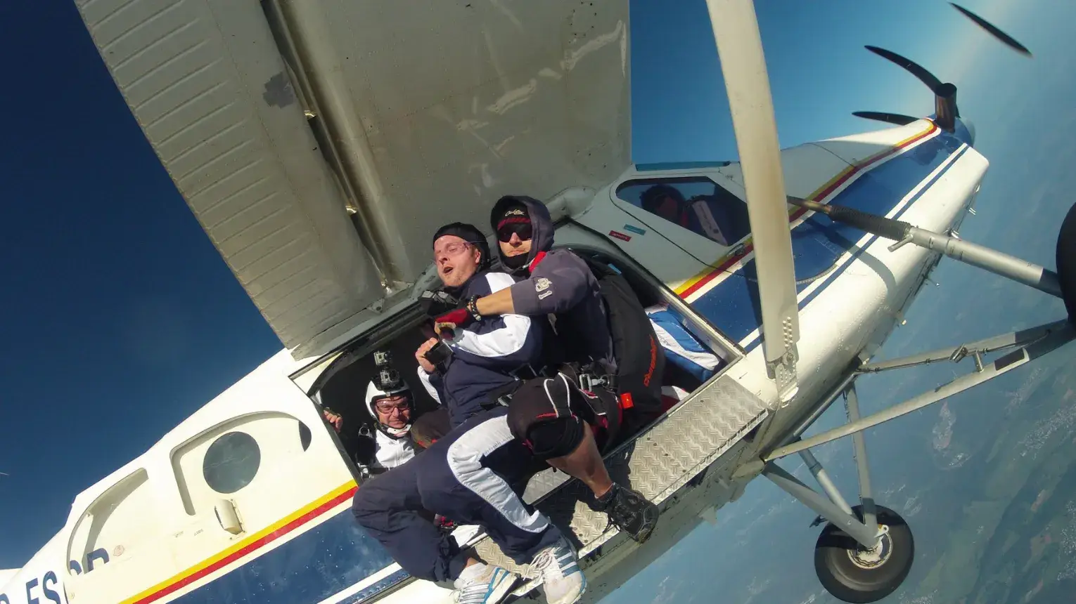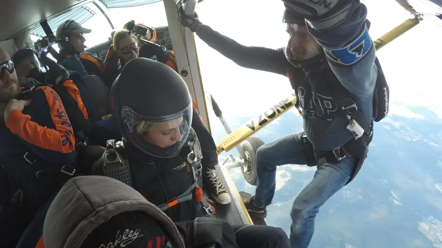 • Aztán jön a nagy pillanat: kinyílik a gép ajtaja, dobban a szív, és már bent is van a szabadesésben!