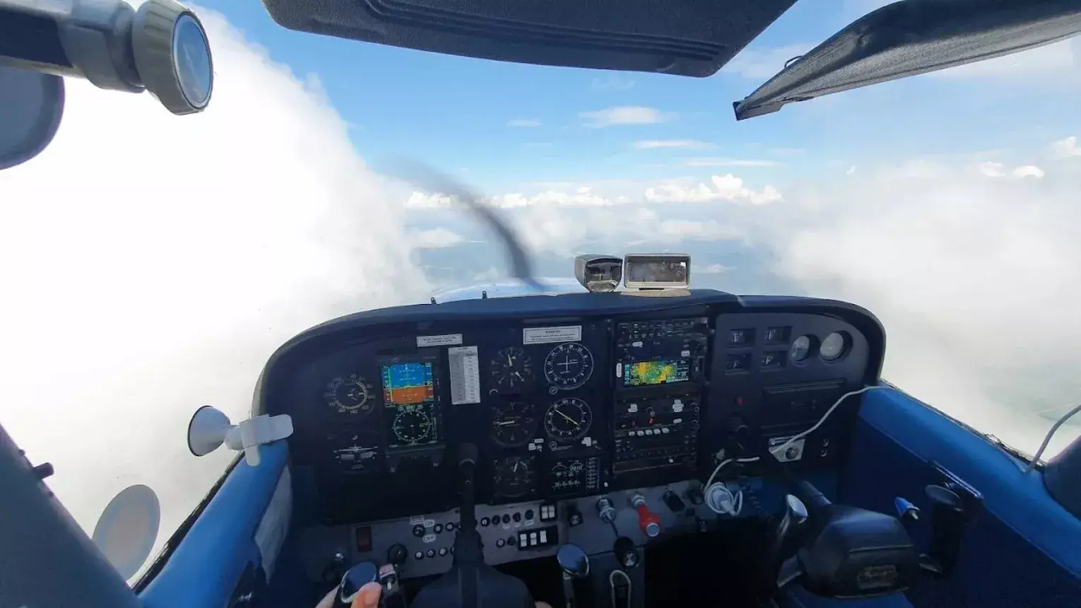 Profi pilóta repíti az Ajándékozottat és kisérőit egy Cessna 172-es típusú kisrepülővel.