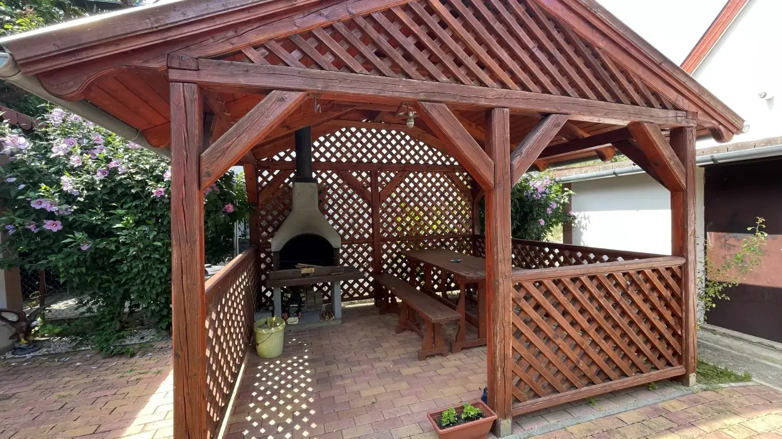 A déli napsütés pedig a kertet érinti, ahol hangulatos grillező sarok lett kialakítva, melyet vendégeink díjmentesen használhatnak. (Filagólira, kerti grill, nyárs.)