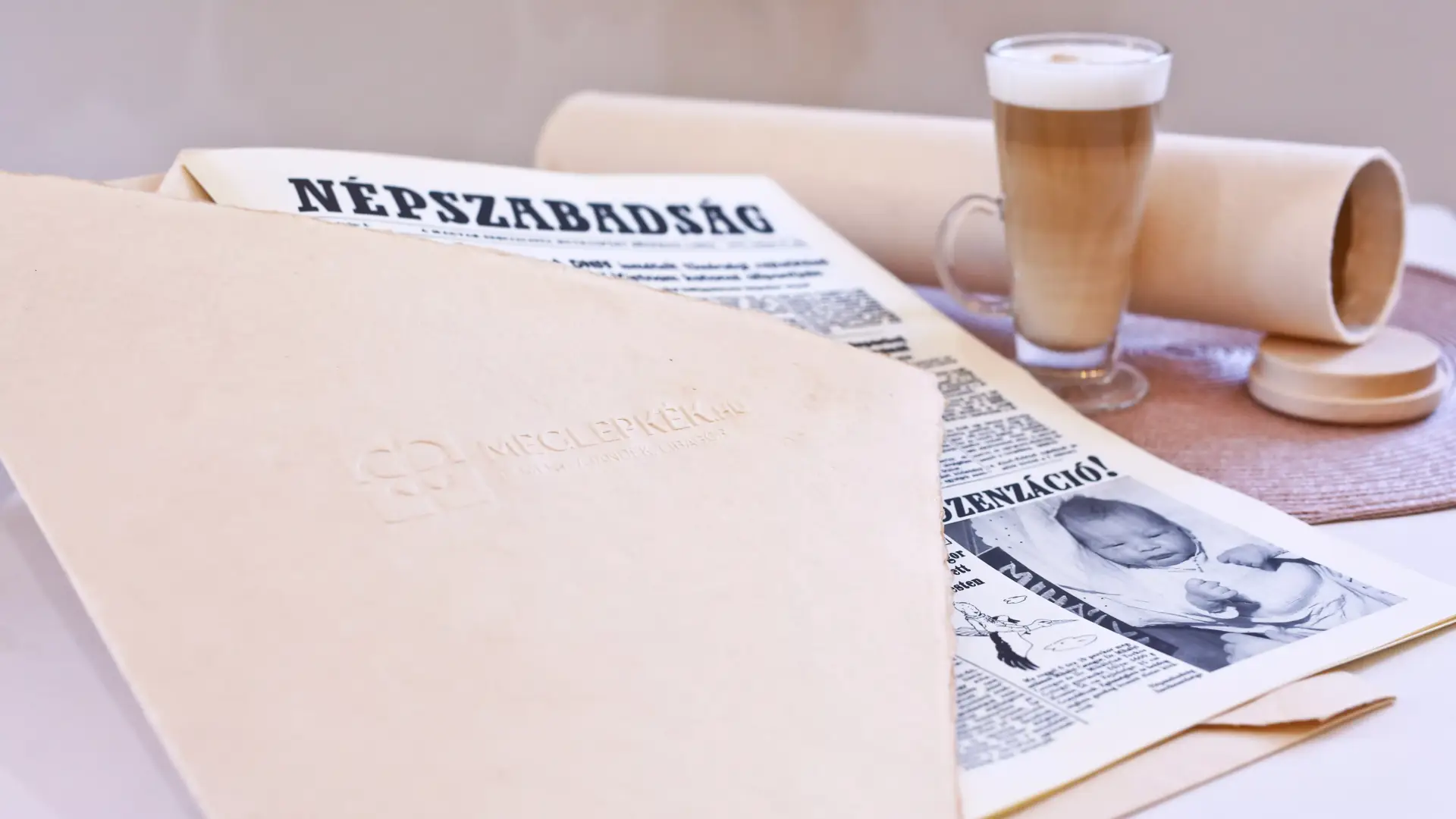 - vékony, sárgás újságpapírra nyomtatjuk, ami korabeli hangulatot kelt.
