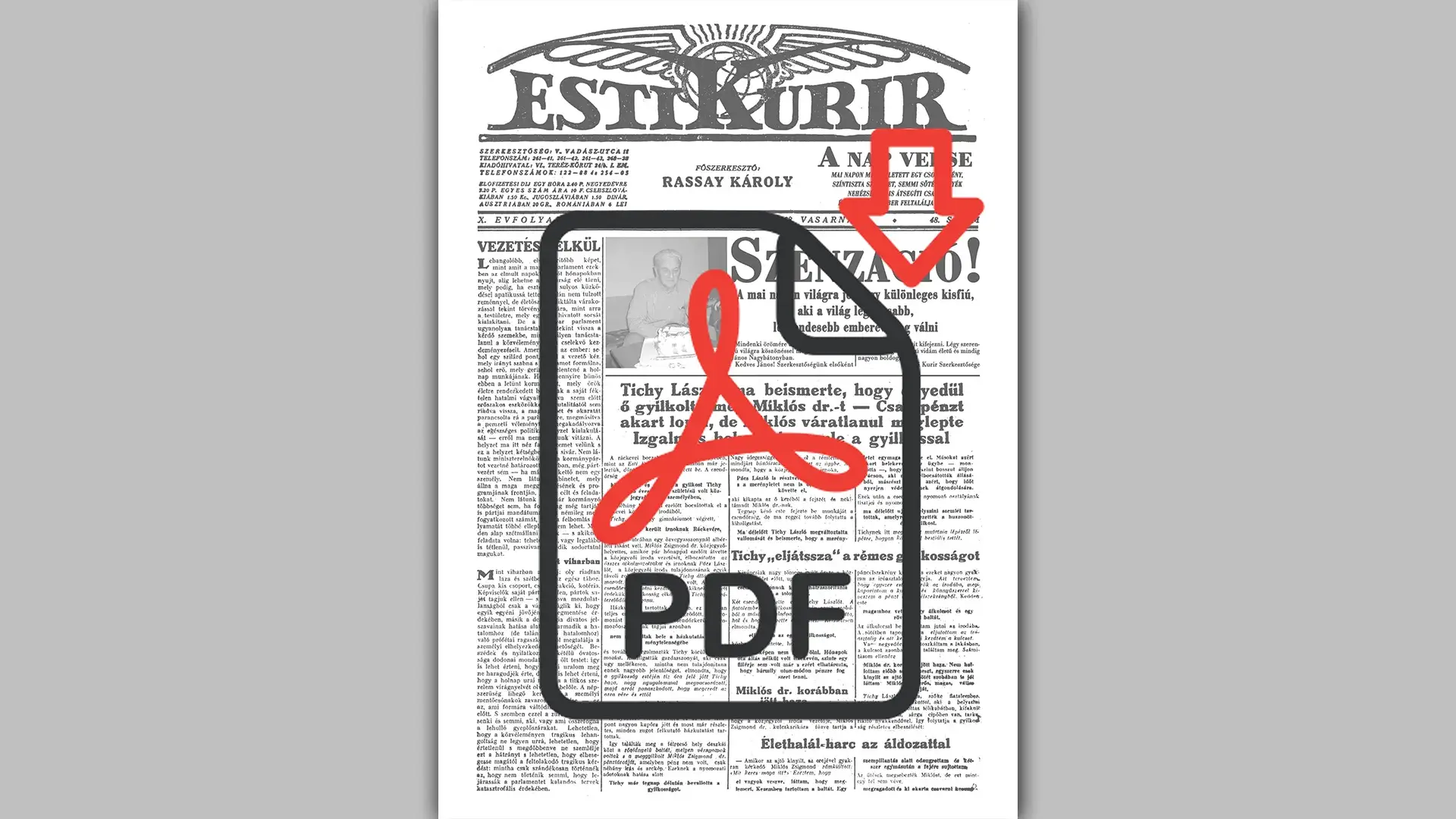 A kiválasztott dátumon megjelent újságokat digitalizáljuk, amit a fotósunk, grafikusunk átszerkeszt, egy egységes megjelenésű anyaggá.