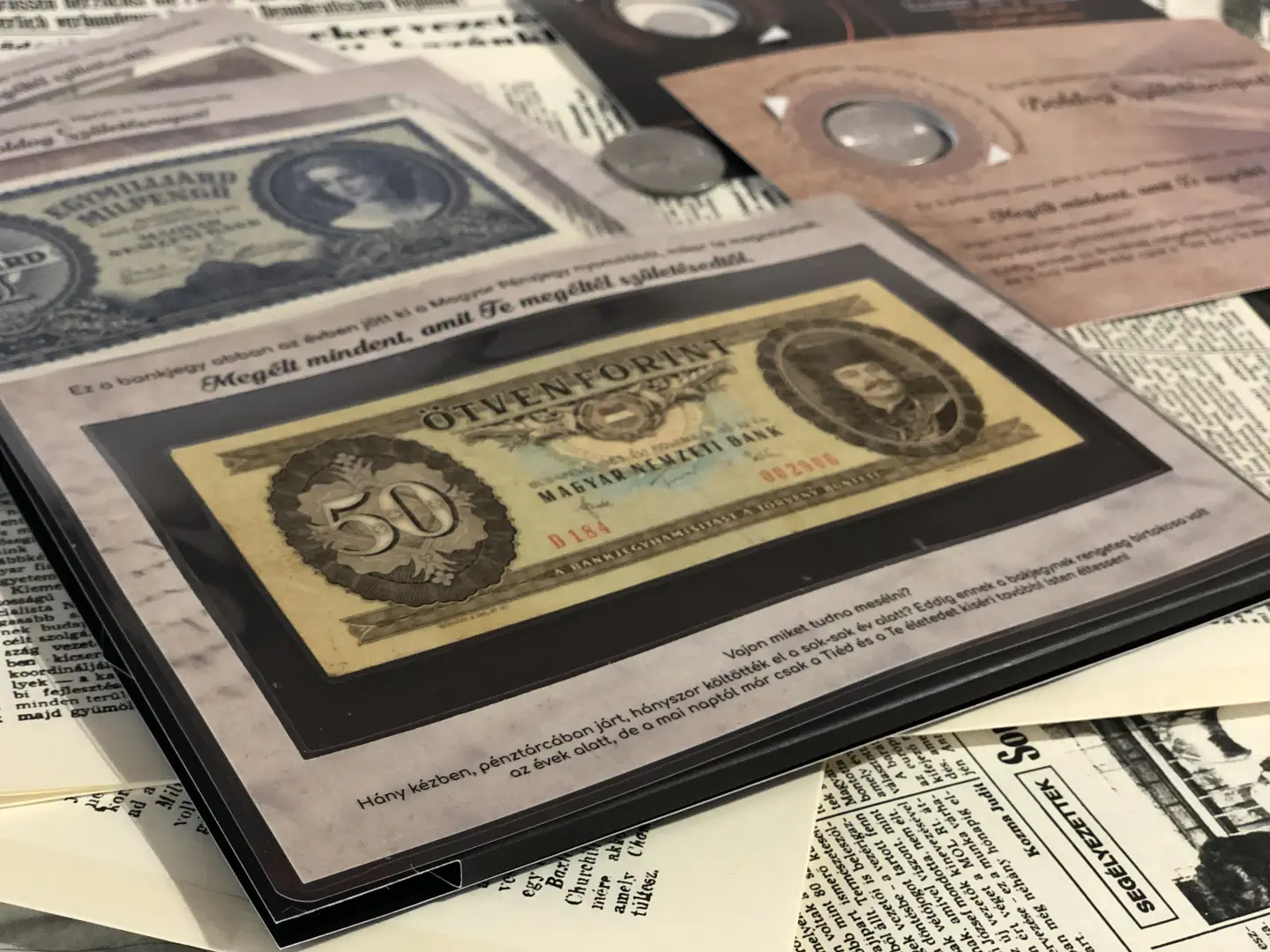 Az ünnepelt születési évében a Magyar Állami Pénzverde által forgalomba helyezett pénzek közül egyet stílusosan csomagolunk. Nem minden évben adtak ki bankjegyet, ilyen esetben minőségi REPLIKÁT adunk!