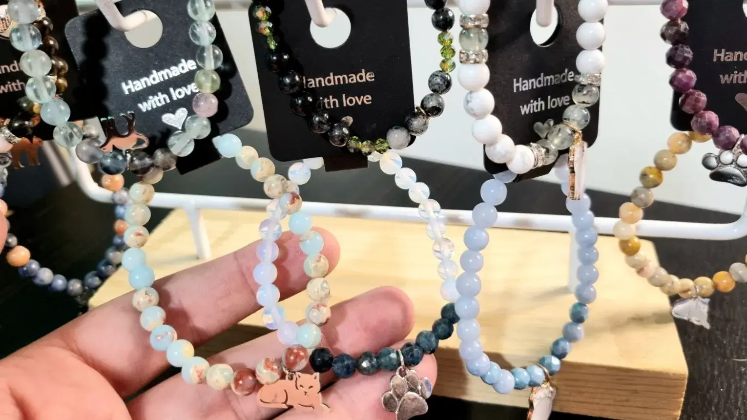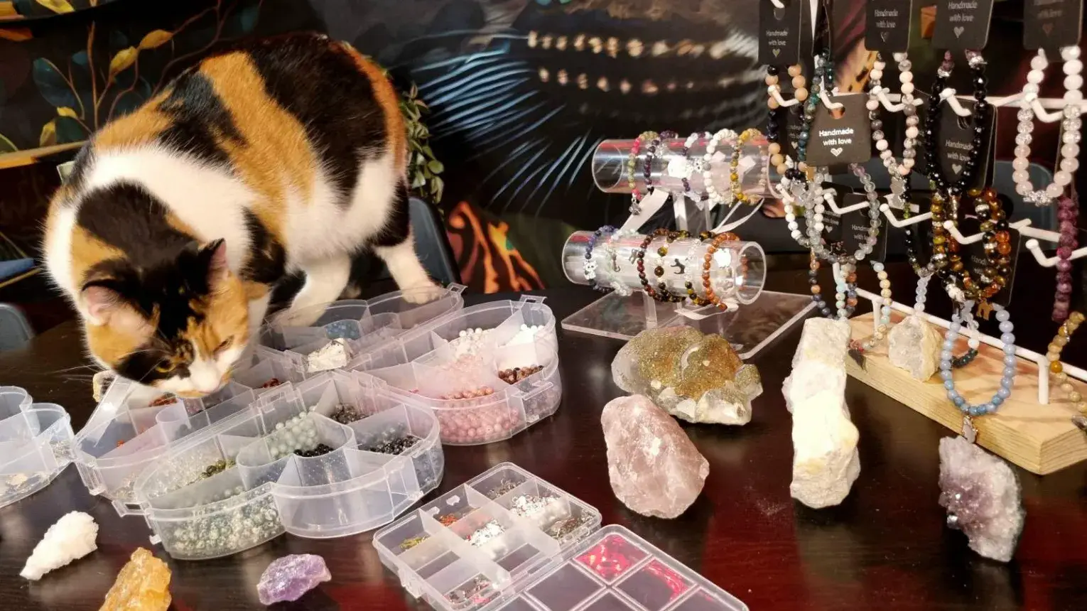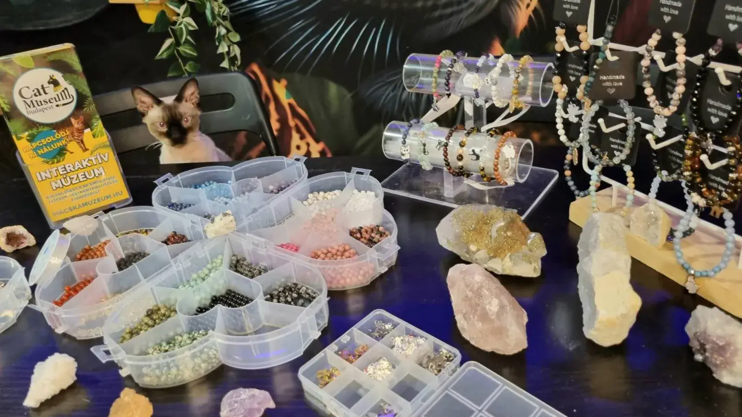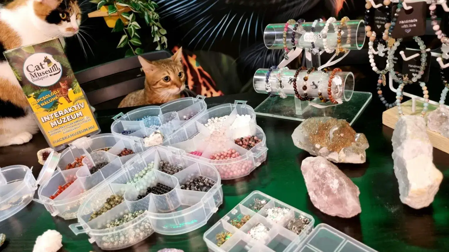 - Saját méretre, tetszés szerinti ásványt / vagy ásvány variációkat kiválasztva készítheti el a karkötőjét cicás díszítéssel, amit utána magával vihet.