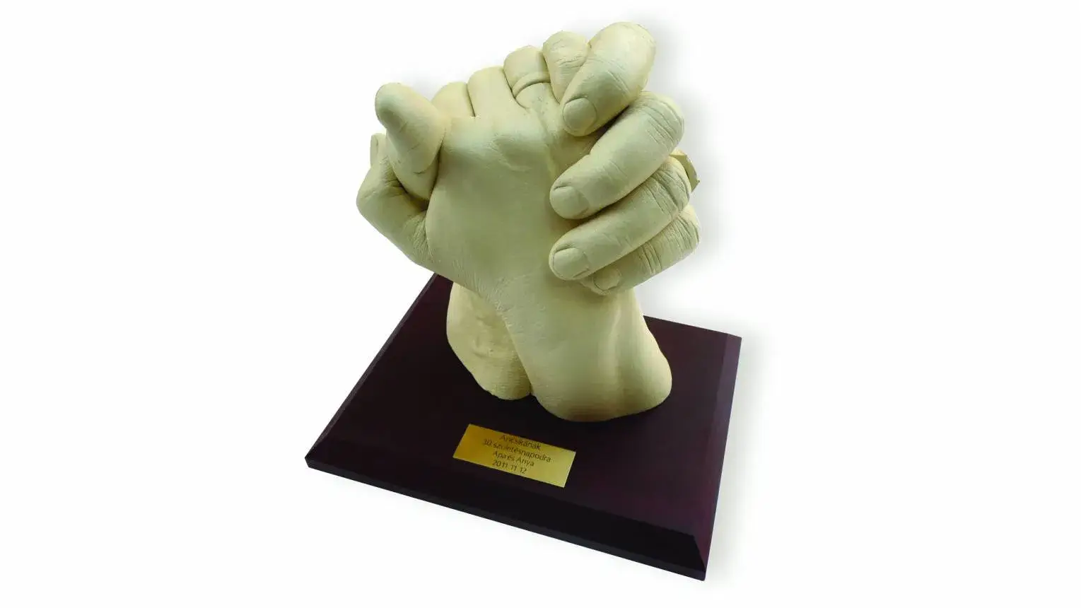 · Kéz, vagy láb szobrok (összekulcsolódó kezek, kéz jelek, ékszertartó kéz...stb). Festés: standard színekre (arany, ezüst, bronz vagy fehér). mintavétel ideje 0.5 óra. A szobor pár nap múlva átvehető készen. Példák kézre: telefontartó saját kezed alapján, gyűrű és karkötő tartó kéz, kéz jeleket formázó kéz szobor, apró tárgyakat tartó kéz szobor...stb. A lehetőségek sora szinte határtalan!